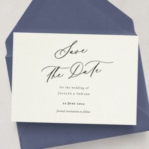 Elegant Calligraphy Save the Date Cards: Off White Textured Cardstock