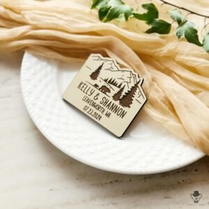 Wood Save the Date Magnets for Wedding – Personalized Mountain Party Favors